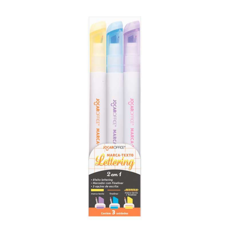 Marca-texto Lettering 2‑em‑1 - 3 unidades Jocar Office