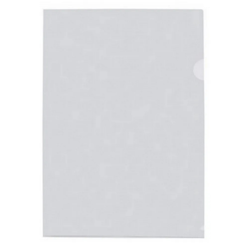 Pasta plástica tamanho A4, estilo “L”, cristal, prática para armazenar e transportar documentos.