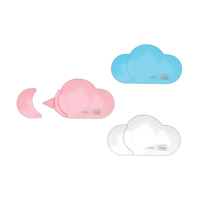 Fita corretiva em formato “nuvem”, 5mm×5m, certificada, prática e divertida.