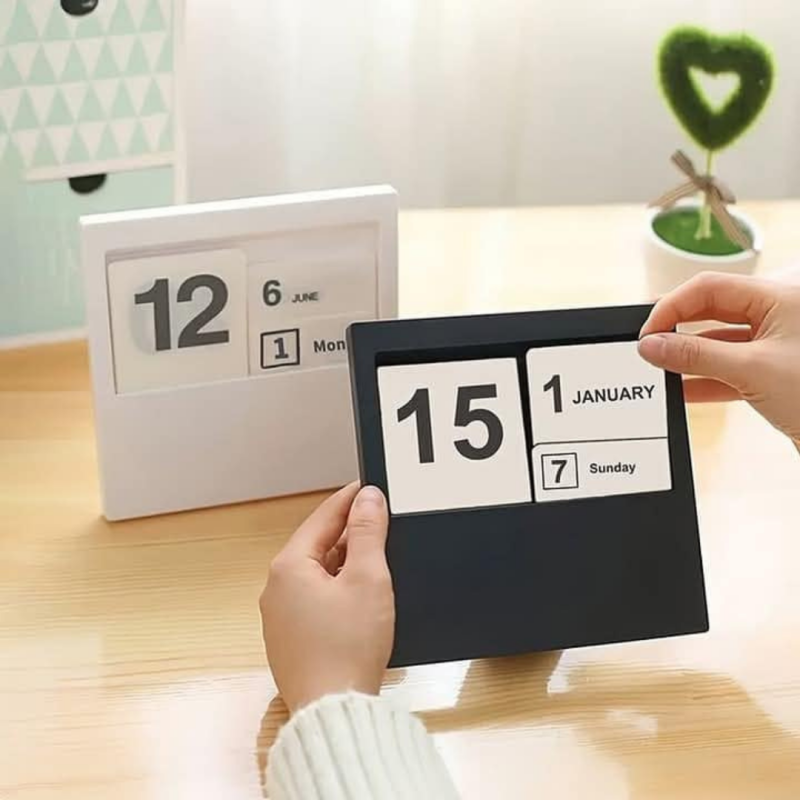 Calendário decorativo de mesa com plaquinhas móveis, ideal para organização e decoração de ambientes.