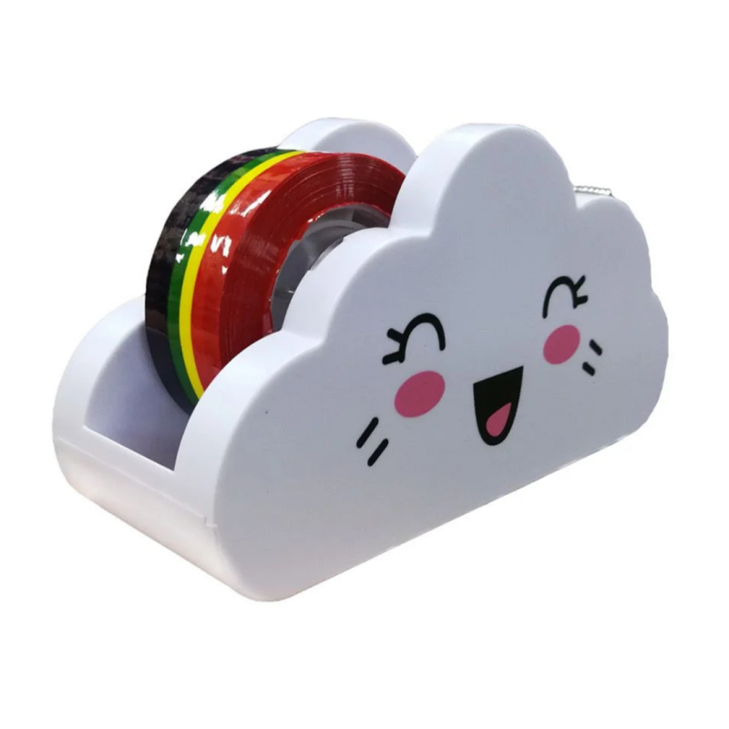 Dispenser em formato de nuvem para fita adesiva + rolo de fita colorida incluído. Design fofo para mesa de papelaria, decoração ou uso escolar.