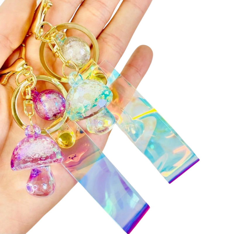 Chaveiro Cogumelo com tira holográfica