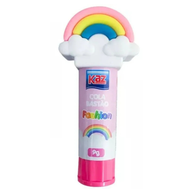 Bastão de cola da Kaz Arco-íris, peso líquido 9g, ideal para uso em papel, atividades escolares e colagens leves.