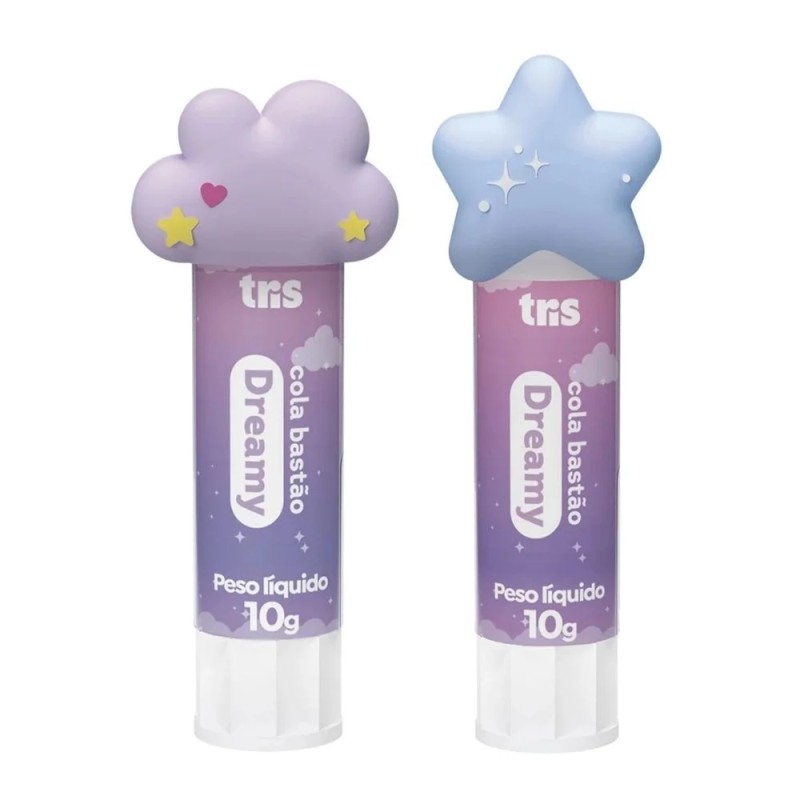Cola bastão com toppers em formato de nuvens e estrelas. Alta resistência ao calor, ótima aderência e secagem rápida.