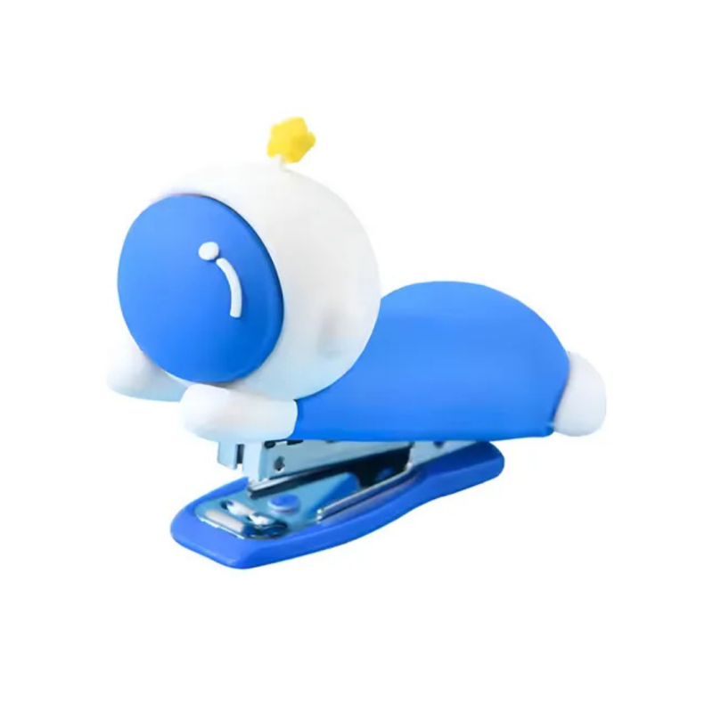Grampeador compacto com design decorativo em formato de astronauta. Ideal para uso escolar, escritório ou home office. Compatível com grampos padrão pequeno (24/6).
